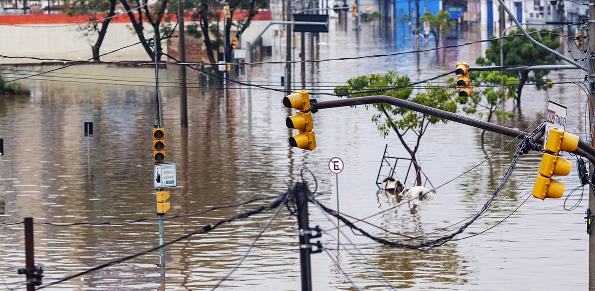 Em maio de 2024, o estado do Rio Grande do Sul enfrentou um dos piores eventos climáticos de sua história. As fortes chuvas, que começaram em abril, fizeram com que o Lago Guaíba atingisse níveis recordes em poucos dias, transbordando os diques e muros de contenção que cercam a capital, Porto Alegre. A bacia da Lagoa dos Patos, em Pelotas e Rio Grande, também foi invadida pelas águas. O resultado foi uma inundação que atingiu mais de 2 milhões de pessoas e deixou cerca de 450 dos 500 municípios debaixo d’água.
